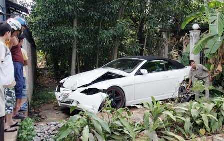 Khi đến cầu Bán Thuyền, xe ô tô bất ngờ lấn sang làn đường ngược chiều, húc vào nhiều xe máy. Có hai xe máy biển số 76C-015.51 và 76V3-1883 chở 5 người trên xe bị ô tô kéo đi.