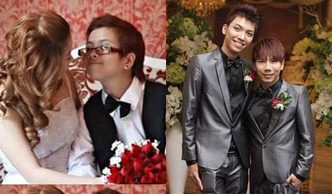 | Đám cưới của cặp đồng tính nữ tại Hà Nội (trái) và cặp đồng tính nam tại Sài Gòn. |