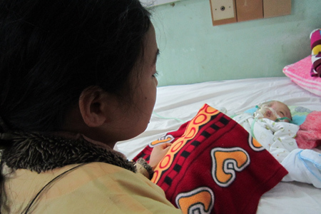 Những ngày giáp Tết, chị Nguyễn Hương phải một thân một mình mang theo con trai mới hơn 2 tháng tuổi, từ Nghệ An ra Hà Nội để chữa trị bệnh tim bẩm sinh. Nhìn đứa con bé bỏng nằm lọt thỏm trong chiếc chăn quấn để ủ ấm cho cháu, chị vừa gạt nước mắt vừa nói: “Cháu còn bị cả viêm phế quản phổi 1 tháng nay, liên tục phải thở bằng ống khí. Các bác sĩ ở trong đấy có giới thiệu ra ngoài này chữa nên mẹ con tôi phải thu xếp đi ngay, sợ để lâu bệnh lại càng nặng. Cả nhà đều sốt ruột chữa bệnh cho cháu nên cũng chẳng còn để ý đến Tết nhất gì nữa”.