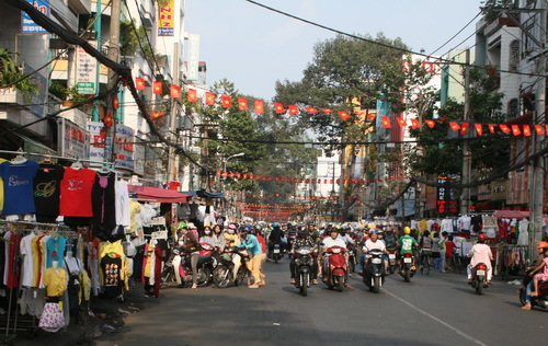 Càng về chiều, sinh hoạt càng chùng xuống. đã xuất hiện khá nhiều tiệm, cửa hàng kéo kín cửa bên ngoài treo biển nghỉ tết hẹn ngày khai trương...