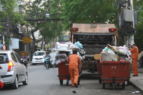 Ngoài đường công nhân vệ sinh bình thản thu gom rác. Dường như với họ khái niệm tết thật đơn giản: “ làm đẹp cho mọi người ăn tết là mình đang ăn tết”.