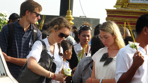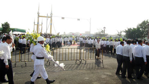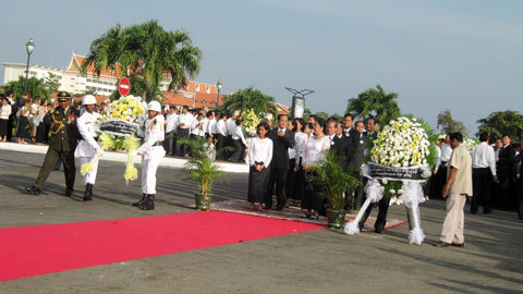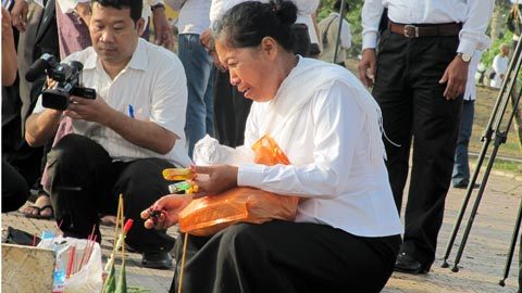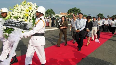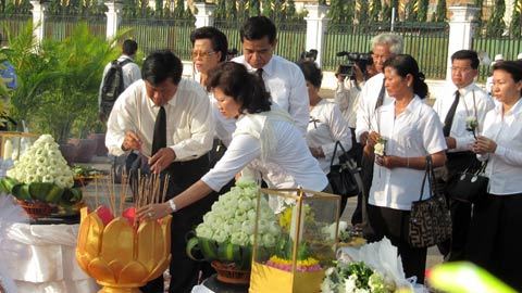 | Người dân Campuchia và Việt kiều, khách nước ngoài đến viếng tại lễ tưởng niệm. |