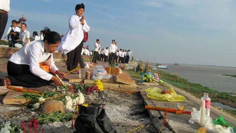 | Bên cầu Koh Pich, ai cũng lặng lẽ đứng nhìn dòng sông, nhìn cây cầu của lễ hội đã biến thành cầu ‘nuốt người”, thảm hoạ khủng khiếp với người dân. |
