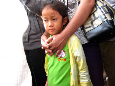 | Cô bé theo mẹ đi viếng tại lễ tưởng niệm với khuôn mặt u buồn. |
