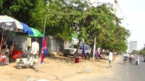 | Cờ Campuchia được treo rủ trên đường phố ngày 25/11 |