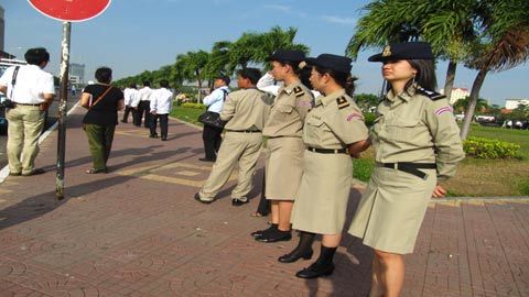 | Nữ cảnh sát Campuchia được huy động bảo vệ lễ quốc tang |