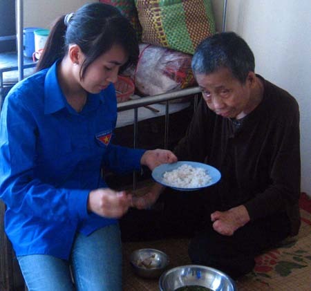 Thành viên trong CLB "Những trái tim nhiệt huyết" chăm sóc bệnh nhân phong tại BV Phong và Da liễu Văn Môn |