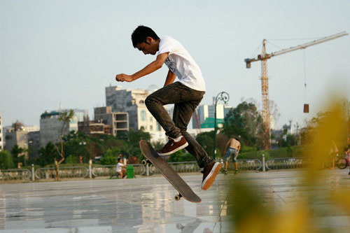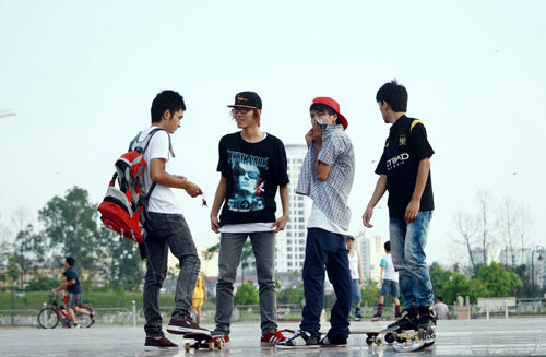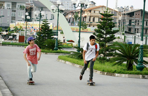 Ván trượt cũng là phương tiện di chuyển đến chỗ tập của các dân chơi |