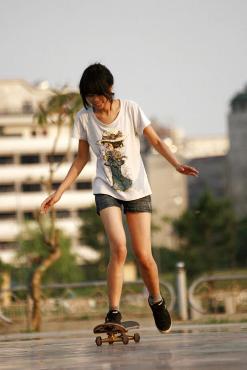 Không chỉ có các teen boy mà các teen girl cũng rất mê trượt ván |