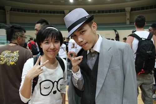 | Vũ Tùng Phương (áo ghi) trong cuộc thi Street Freestyle Dance Battle 1 vs 1 |