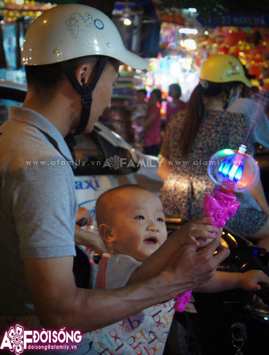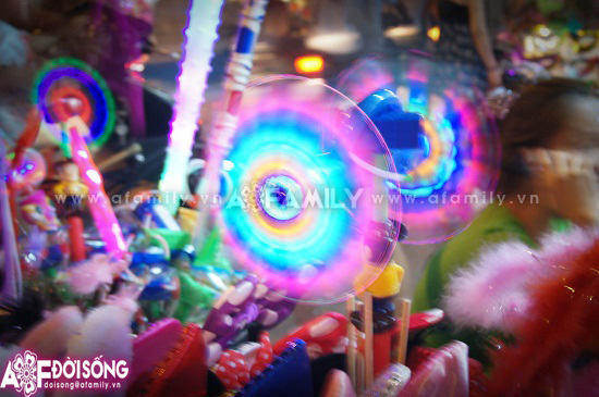 Người mua, người bán qua lại tấp nập trên phố khiến không khí càng trở nên đông vui và nhộn nhịp. Các cửa hàng thì thi nhau bày các kiểu đồ chơi, cái thì được xếp trên giá, cái thì treo… Có cửa hàng còn cho khách hàng dùng thử cả đồ chơi mới.