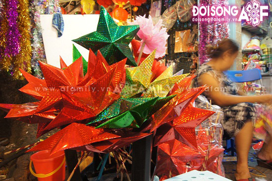 | Không thể thiếu ở Hàng Mã là những chiếc đèn ông sao. |
