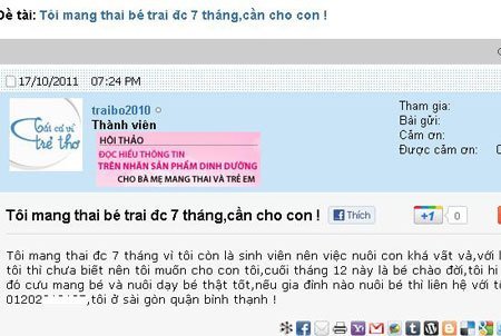 “Tôi mang thai bé trai được 7 tháng, cần cho con!” – lời “chào hàng” nhanh chóng được truyền khắp các trang mạng, diễn đàn. Người mẹ trẻ này cho biết: “Tôi mang thai được 7 tháng, vì còn là SV nên việc nuôi con khá vất vả với lại gia đình chưa biết nên tôi muốn cho con. Cuối tháng 12 này là bé chào đời, tôi hi vọng có ai đó cưu mang bé và nuôi dạy bé thật tốt. Tôi ở Sài Gòn, quận Bình Thạnh. Nếu gia đình nào nuôi bé thì liên hệ với tôi theo số điện thoại 0120291xxx”.