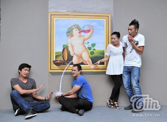 Có mặt tại trung tâm tranh 3D, Trung tâm thương mại Thiên Sơn Plaza – Q7, Lương Thế Thành, Hoàng Phi, Quang Tuấn và Ngọc Trinh thay nhau tạo dáng và diễn xuất với những tình huống như thật khiến những ai có mặt đều bật cười.