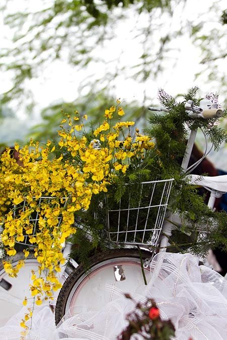 | Những chiếc xe được sơn cách điệu màu trắng và "mang" trên mình những bó hoa rực rỡ nhiều sắc mầu. (Ảnh TTO) |