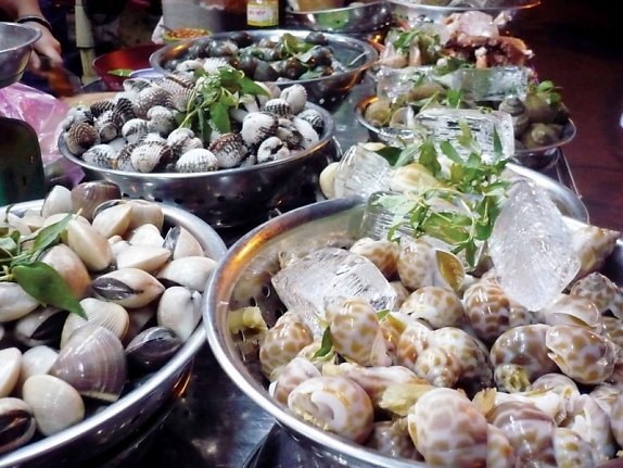 | Ai mê mấy hàng đồ biển nướng, hấp thì đến khu phố Cầu Gỗ gần chợ Hàng Bè |