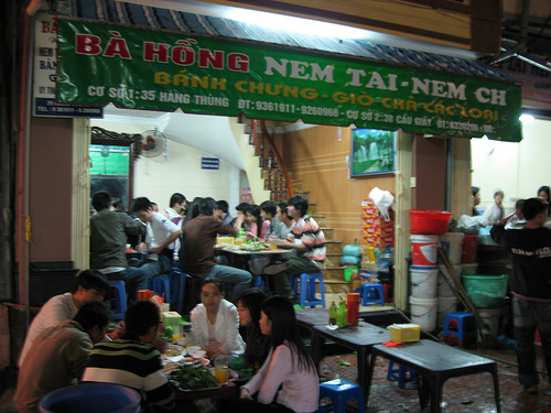 Tưởng chỉ riêng người Hà Nội mới thích mấy món ăn bốc chấm nước mắm này ấy thế mà cả người Tây cũng ham. Có vị lầm tưởng bàn ăn ở đây sạch như bàn ăn ở nước họ nên cứ hồn nhiên dải bánh nem lên bàn cuốn cuốn gói gói, trông đến ngộ. Lại có có người tận Sài Gòn, ra Hà Nội chơi còn cố qua cửa hàng mua một chút nem tai để làm quà cho người nhà.