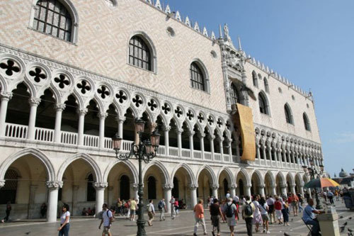 | Cung điện Ducale là biểu tượng của thành phố và là một kiệt tác của kiến trúc Gothic, nằm ở quảng trường San Marco. |
