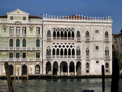 | La Cá d’Oro (Nhà Vàng): Là một dinh thự cạnh Kênh Lớn (Grand Canal), được xây dựng bằng đá hoa cương nhiều màu và được trang trí mạ vàng ở mặt nhìn ra con Kênh Lớn. Đây là dinh thự điển hình cho việc thay đổi phong cách trong kiến trúc Gothic. |