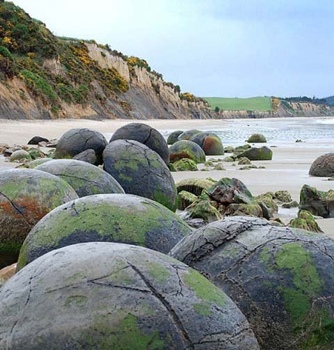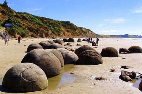 Đến bãi biển Koekohe, bạn sẽ không khỏi ngạc nhiên khi trước mặt là hàng trăm khối đá hình cầu trông như những viên bi khổng lồ nằm rải rác ven biển.