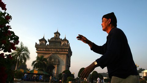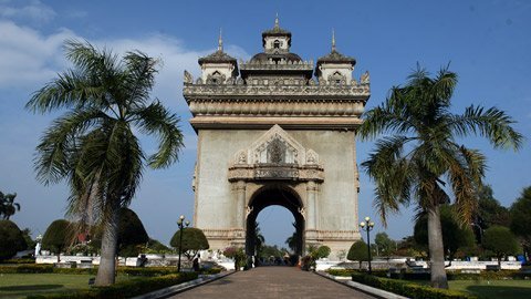 Đài Anou Savary (Đài chiến sĩ vô danh) sau năm 1975 đã được đổi tên thành Khải Hoàn Môn tọa lạc giữa bùng binh giáp ranh phố Vientiane và chùa That Luong được xây dựng từ năm 1958 với kiến trúc bên ngoài và phần dưới mô phỏng theo đài Arc de Triumphe ở Paris. |