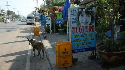 | Nhiều người gốc Việt sinh sống ở Viêng Chăn và để kiếm được một cửa hàng ăn uống hay dịch vụ đề biển bằng tiếng Việt không phải là hiếm. |
