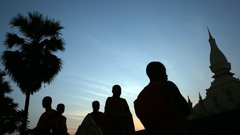 | Khởi đầu một ngày mới của các nhà sư chùa That Luong. |