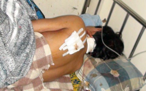 Bệnh nhân Son vào viện với 3 vết thương: Vết thương gối trái, vỡ xương bánh chè, phải phẩu thuật cầm máu, phục hồi bao khớp. Vết thương cánh tay trái dài 7cm, vết thương khủy tay trái dài 8cm đứt gân duỗi, khâu phục hồi.