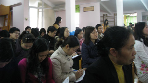 | Các bậc phụ huynh sau buổi toạ đàm. Ảnh HP. |