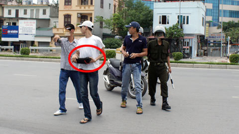 Khoảng 11h, trên Phố Bà Triệu (ngay trước tòa nhà Vincom), những đối tượng đi xe không đội mũ bảo hiểm khi thấy bóng lực lượng CSGT đã quay đầu định bỏ chạy thì ngay lập tức đã bị lực lượng cảnh sát hình sự cải trang bắt lại.