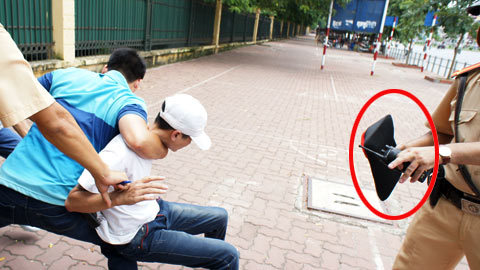 Khi phát hiện đối tượng chuẩn bị sử dụng hung khí để chống trả, một CSGT đã giật được chiếc túi trên tay y, cùng lúc CSHS, CSCĐ quật ngã đối tượng.
