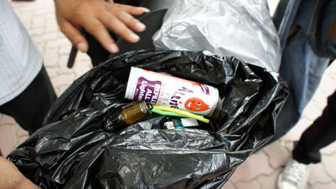 Khám khẩn cấp chiếc xe của 2 đối tượng nói trên, đã phát hiện rất nhiều dụng cụ để sử dụng ma túy và bình xịt hơi cay, dùi cui điện, dao