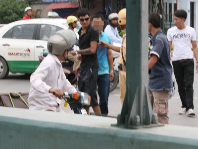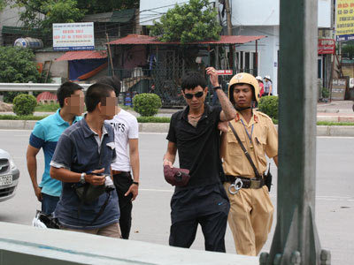 - Khoảng 12h35 ngày 7/8, một người điều khiển chiếc xe máy Vespa trên đường Giải Phóng (Hà Nội) không đội mũ bảo hiểm vừa thấy bóng CSGT liền quay đầu xe định bỏ chạy thì lập tức một chiến sĩ Cảnh sát hình sự mặc áo thường phục có mặt kịp thời tóm gọn.