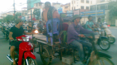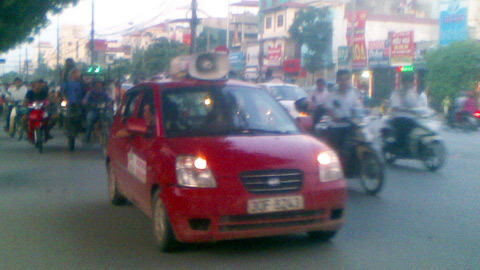 Nhiều người dân đi trên đường Nguyễn Trãi chiều 12/8 đã giật mình với pha quảng cáo chẳng giống ai này. Thậm chí nhiều người 'yếu bóng vía' còn hoảng sợ, phóng xe thật nhanh qua đoàn quảng cáo của gánh xiếc này.