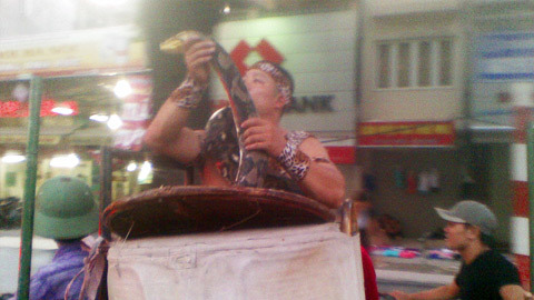 Được biết, con trăn nói trên là của một gánh xiếc đang trên đường đi quảng cáo cho buổi biểu diễn vào tối 12/8 ở chợ đầu mối Phùng Khoang.