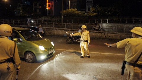 Tổ công tác gồm 8 người, trong đó có 2 chiến sỹ cải trang làm nhiệm vụ tuần tra, xem xét người tham gia giao thông vi phạm để báo qua bộ đàm cho các chiến sỹ còn lại đứng cách các quán nhậu chừng 50m xử lý.
