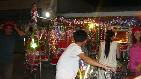 bán các mặt hàng như bóng bay, đồ chơi trẻ em và sản phẩm phục vụ cho lễ Giáng
