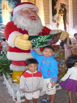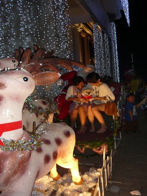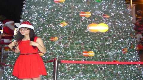 Nhiều em bé, các cặp tình nhân chào đón Giáng Sinh bằng cách diện những bộ đồ màu đỏ, đóng giả ông già Noel đổ ra đường chụp ảnh.