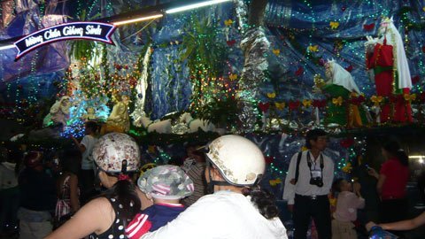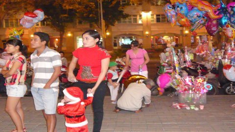 Cả thành phố hoa lệ nay lại càng thêm rực rỡ, sáng bừng lên bởi các ánh đèn nhấp nháy, trái châu đủ màu, hang đá và dây kim tuyến.