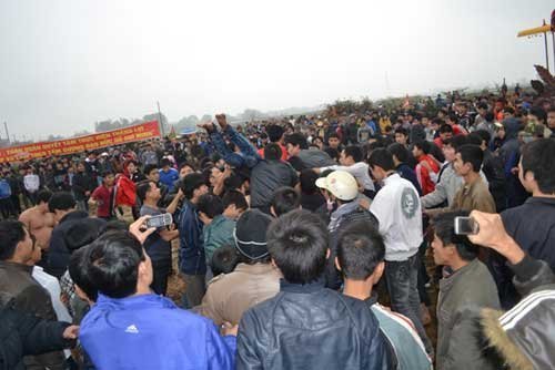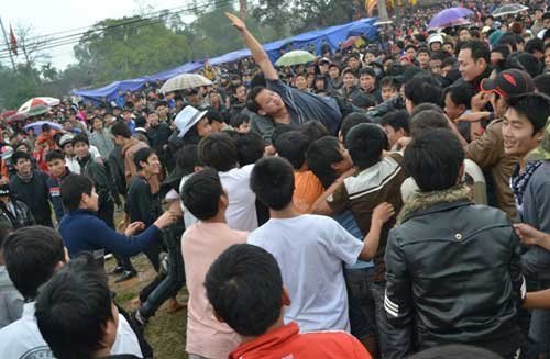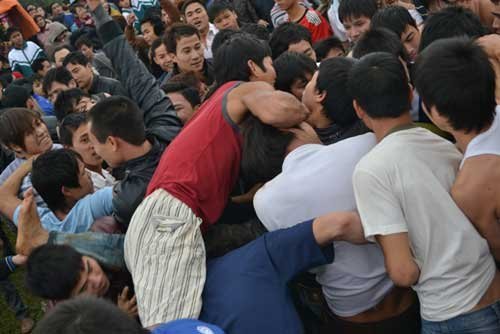 Đám thanh niên trai tráng hừng hực lao vào, kẻ hô, người hét, trèo lên người, đứng lên vai, đè lên đầu nhau trong tiếng reo hò cổ vũ của hàng ngàn người tạo nên không khí tưng bừng sôi động của hội phết đầu năm.