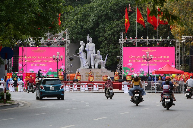 A stage set up in Hoan Kiem District for President Ho Chi Minh’s birthday.
