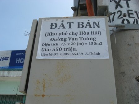 Dọc các con hẻm, ngõ ngách, thôn xóm, trên đường phố Quảng Nam... đều được căng đầy pa-nô, các tờ rơi rao bán nhà đất được dán đầy trụ điện, tủ biến áp, tường rào… thậm chí có người đứng phát cho người đi đường.