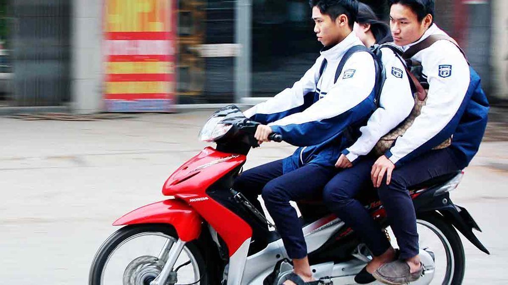 Các em thường điều khiển xe máy đi theo đường vành đai, đường tắt, luồn lách qua các ngõ nhỏ ở khu dân cư đến trường hoặc gửi xe xa trường học rồi đi bộ vào lớp. Có những em khi ra khỏi trường học thì cởi áo có tên trường gắn ở vai áo ra hoặc không cởi áo ra thì mặc thêm áo chống rét, chống nắng vào để qua mắt các thầy cô giáo và công an.