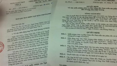 Ngân hàng Việt Á phủ nhận không có 2 quyết định nào điều động ông Tôn Thất Quang qua 2 chi nhánh. Tuy nhiên, trong quyết định miễn nhiệm lại thể hiện ông Quang phải chịu thi hành quyết định tại Chi nhánh Chợ Lớn.