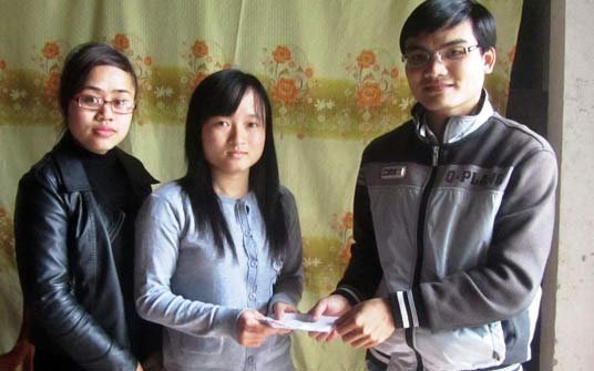 Hai chị em Lương Thị Huyền (sinh viên năm 3 ngành Thông tin thư viện, ĐH KHXHNV HN) và Lương Thị Trang (sinh viên năm 1 ngành Kế toán, ĐH Kinh tế KTCN Hà Nội) đã trực tiếp nhận 2 suất quà nói trên, mỗi suất trị giá 500.000 đồng.