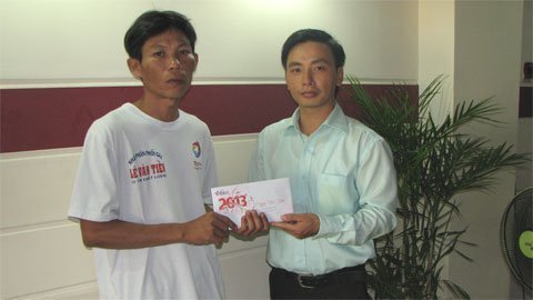 | Anh Dương Minh Lý (trái) nhận tiền bạn đọc ủng hộ |