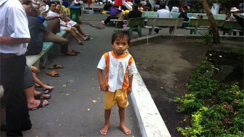 Không chịu được cái không khí ngột ngạt oi nồng trong phòng bệnh đông đúc, bố con anh cố dìu nhau xuống sân hóng mát. Đứa trẻ gầy ốm xanh xao chỉ còn da bọc xương bước đi nặng nhọc. Vừa mới xuống sân một lúc bé đã nôn ói tới 3 lần.