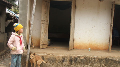 | Nhà chỉ có 3 mẹ con nay chị Dung lại đi viện chỉ còn 2 đứa nhỏ côi cút (Ảnh chụp khi chúng tôi về thăm khi chị chưa tái bệnh) |