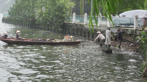 | Hồ Tây bây giờ vẫn nhiều rác |