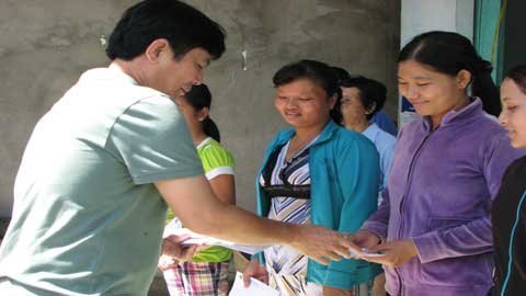 | Ông Nguyễn Đức Liên đại diện Báo VietNamNet trao quà cho người dân. |